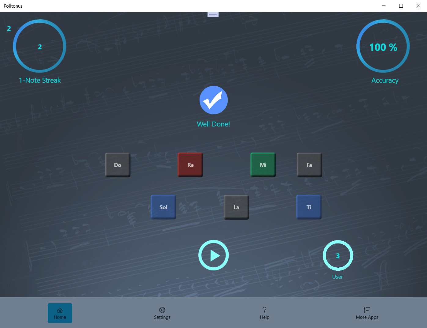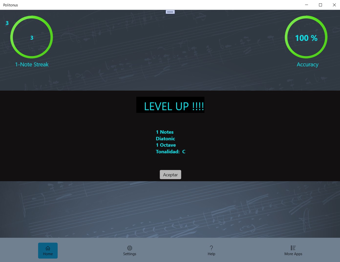 Politonus includes a Training Coach that will track your progress and choose the next ear training exercises for you. You may turn off the coach if you want.