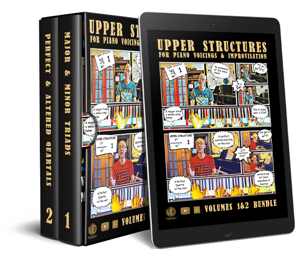 That’s all. If you want to dig deeper into the topic and learn these amazing Piano Voicings and play them like the pros, check out our Upper Structures for Piano Voicings & Improvisation