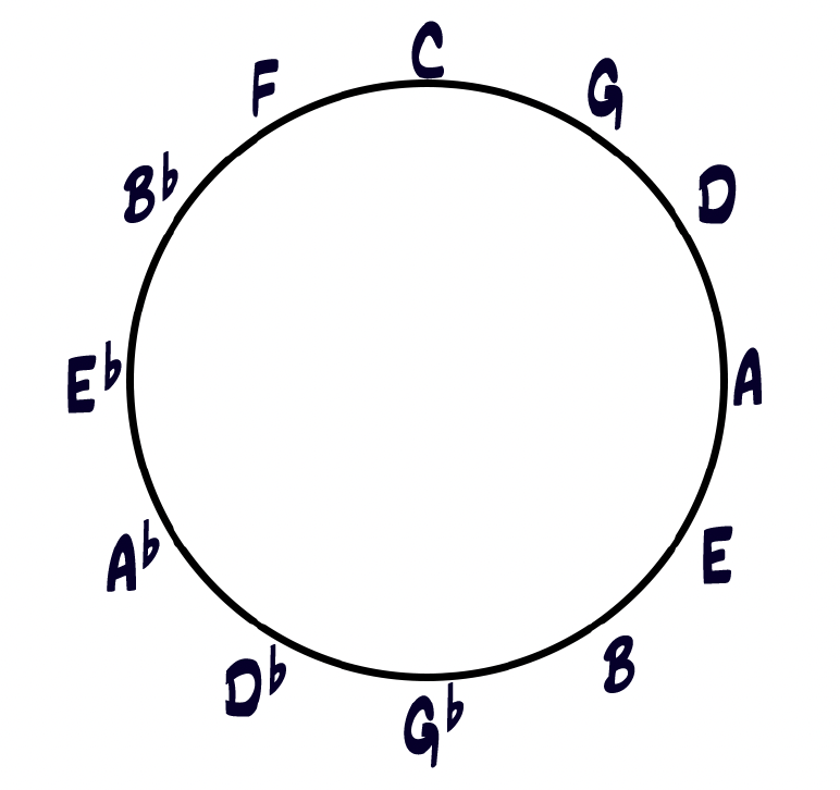 - Go around the circle (clockwise) and add all the other notes in our 12-tone system. Remember each node is a perfect fifth above the previous node.