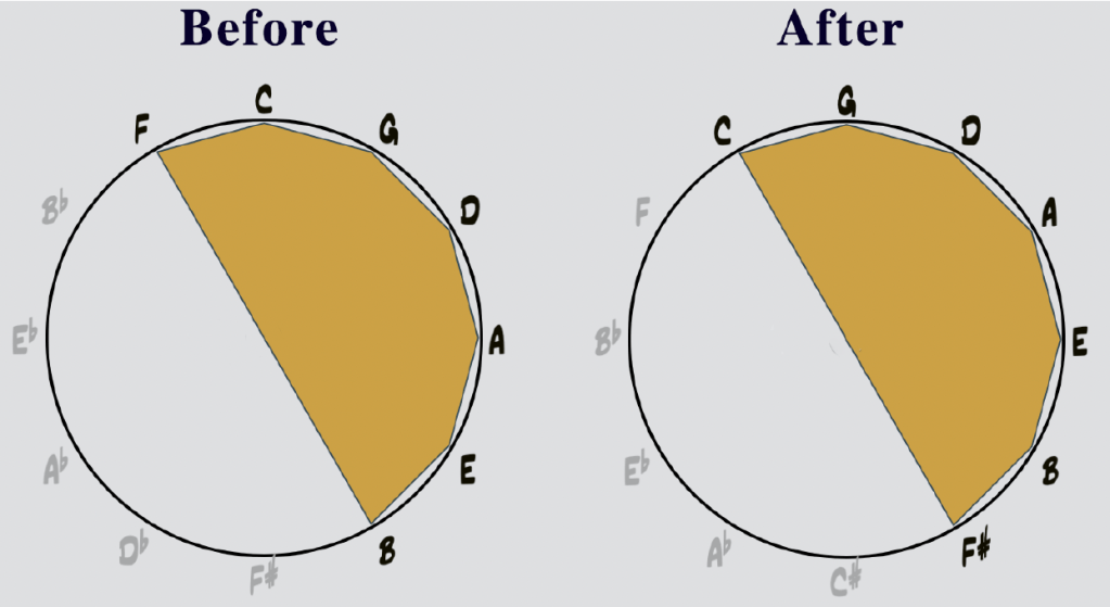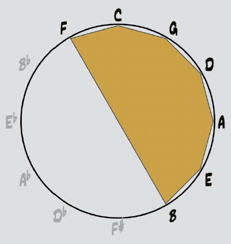 The Circle of Fifths is one of the most powerful tools we half to represent our 12-tone system. By stacking perfect fifths you get all the notes in western music. Using the circle of fifths to show scales allows us to find very interesting properties of that scale, from determining key signatures, to finding all its related modes and symmetric properties of scale, and much more.