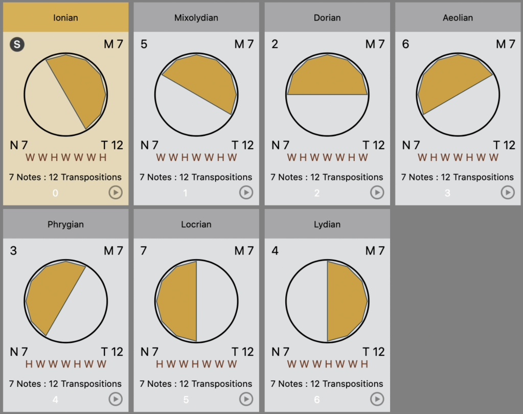 - Get all the related modes of a scale by rotating the entire circle, note-labels and polygon together, one node at a time. Make sure the top note in the circle is always a vertex of the polygon.