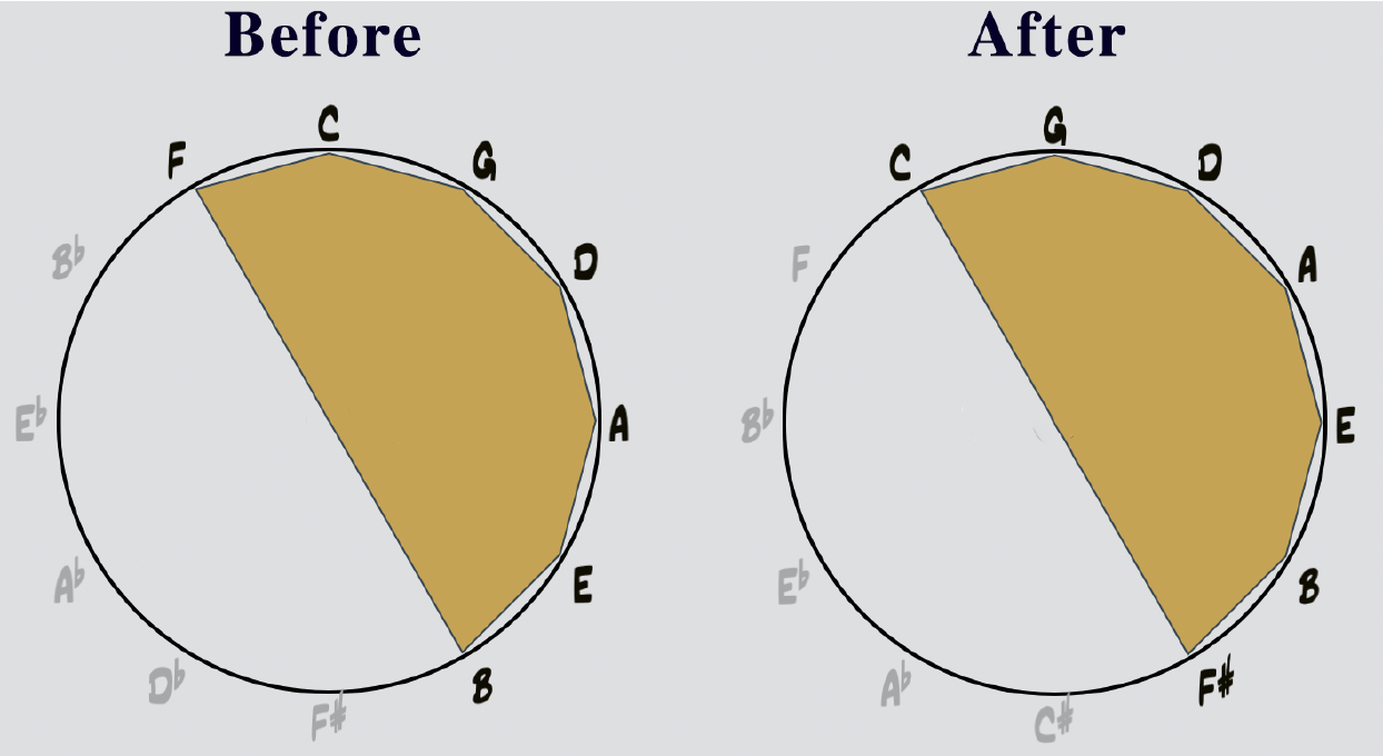The Circle of Fifths is one of the most powerful tools we half to represent our 12-tone system. By stacking perfect fifths you get all the notes in western music. Using the circle of fifths to show scales allows us to find very interesting properties of that scale, from determining key signatures, to finding all its related modes and symmetric properties of scale, and much more.