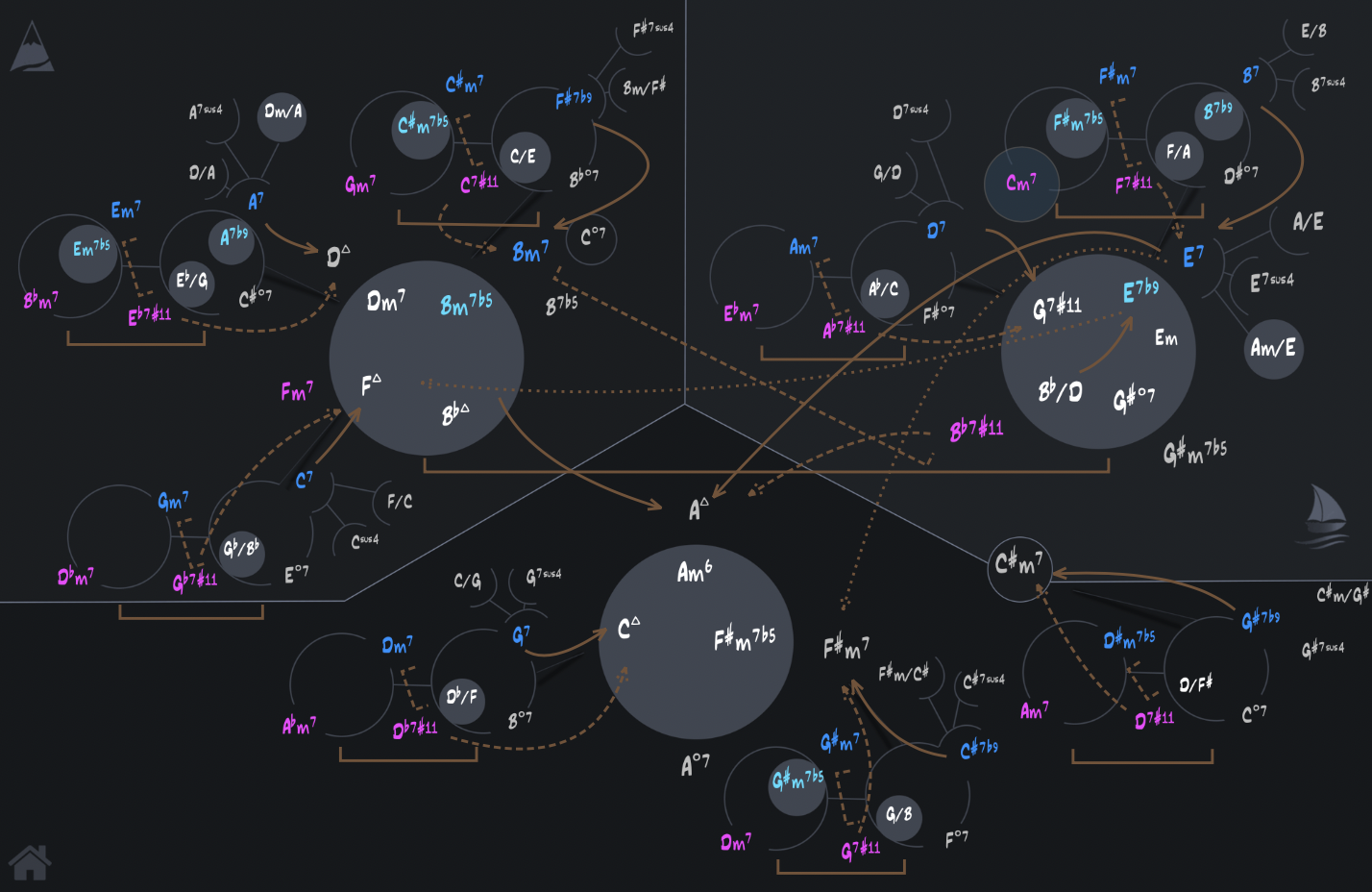 in the key of Bb. It’s still a Dorian sound, but should now be reinterpreted as a iim7 in the key of Bb. Now the map clearly represents the harmonic progression.