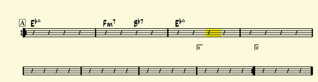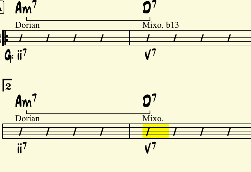 By default, target notes show up as note-figures taking the entire length of the chord (half-notes, whole-notes, etc.) Sometimes, it is useful to see the target notes without the length (because your brain feels free to improvise around them better.) Enable the Stemless button to see target notes as stemless notes and the spaces between notes filled up with slashes.