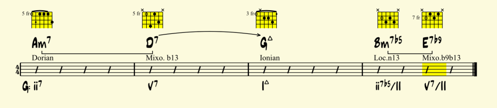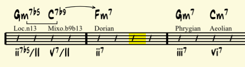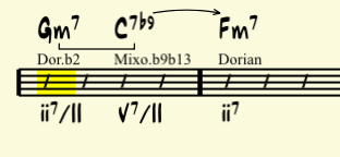 Let’s say you have entered a ii – V – I – [ii/ii – V/ii] progression and you want to practice playing over it in all keys around the circle of fifths (G Major to C major to F major…)