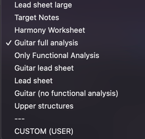This tool will show one target note per chord, and you can choose the type in this panel. This is a very intuitive tool as well. Make your selection and Mapping Tonal Harmony Pro will show the target notes in the staff.