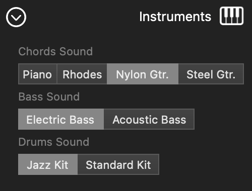 As we mentioned earlier the inversions panel allows you to change the inversion of the chord you’ll play next.