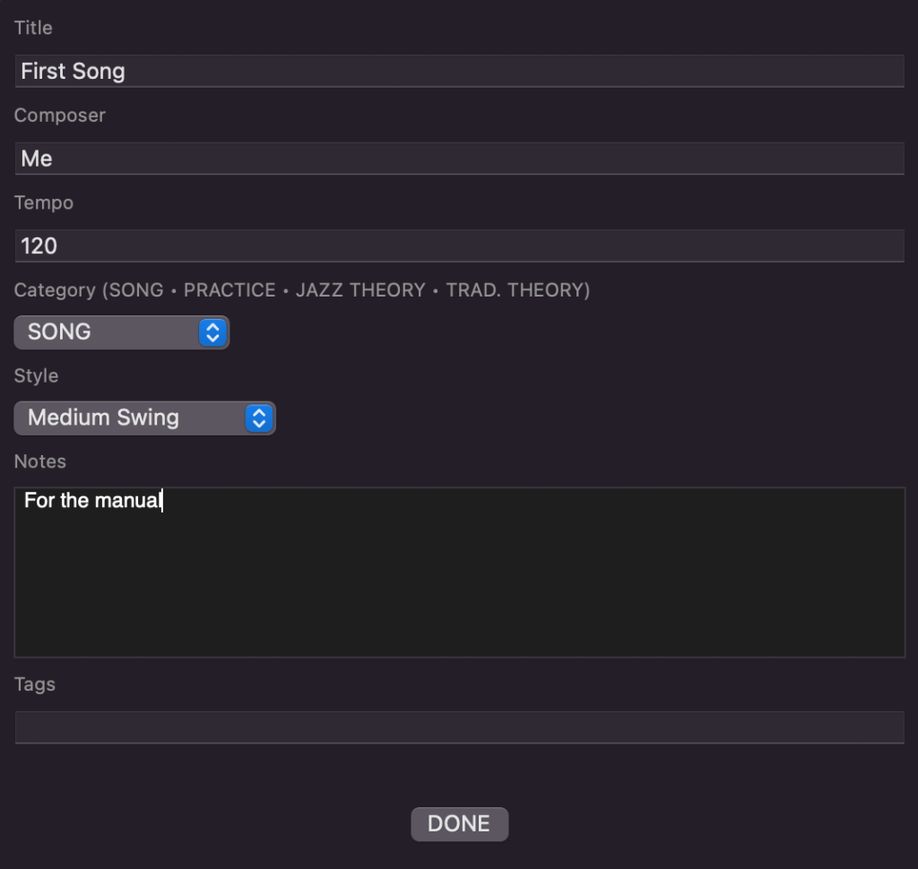 6. For Mapping Tonal Harmony Pro, a song is made out of the form and a harmonic progression. Chord symbols are not stored, they are calculated based on the starting key, modulations, and harmonic functions.
