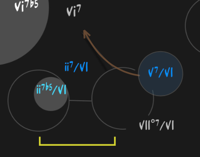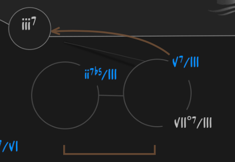 When clicking on the map, Mapping Tonal Harmony Pro will detect (and highlight) often-used cadences and important bass-lines movements.