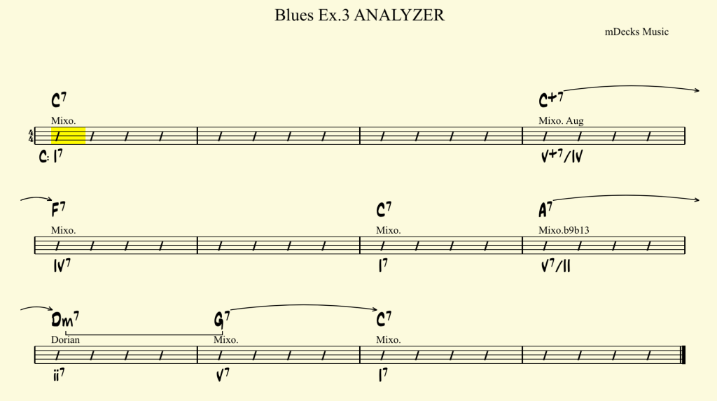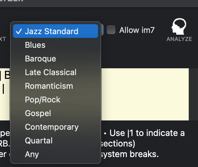 • Analyze the same song using any of the 10 different harmonic languages available: Jazz, Blues, Early Baroque, Late Classical, etc. Remember, although the rules of harmony are universal, some styles differ in the way they approach it (i.e. In Blues you can have a I7 chord)