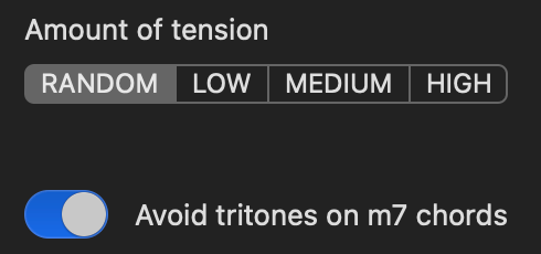 You can also tell Mapping Tonal Harmony Pro to only consider upper structures that offer a certain amount of tension. Remember that every time you click on one of these options the app will show a brand new set of upper structures using its algorithm.