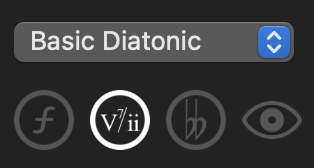 Enable the functional button (cursive f) if you want to see all the chords in the map notated as harmonic functions. In this setting the map will look the same in all keys.