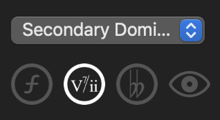 Enable the secondary button (V7/ii) if you want the map to show the complete secondary functional notation (i.e. V7/VI.) Since the location of the secondary functions is obvious, you can disable this button to make the map less crowded if needed.