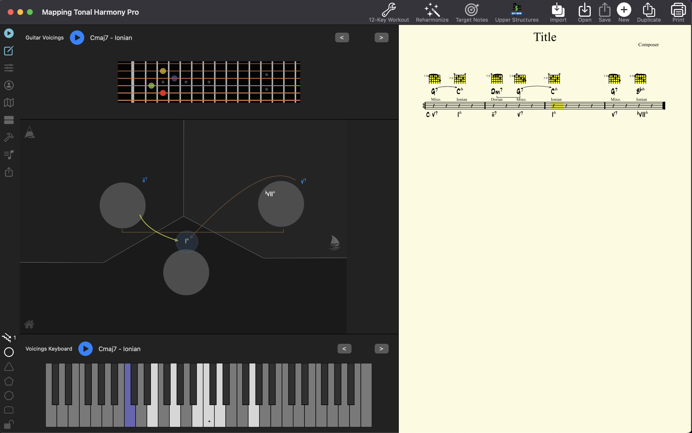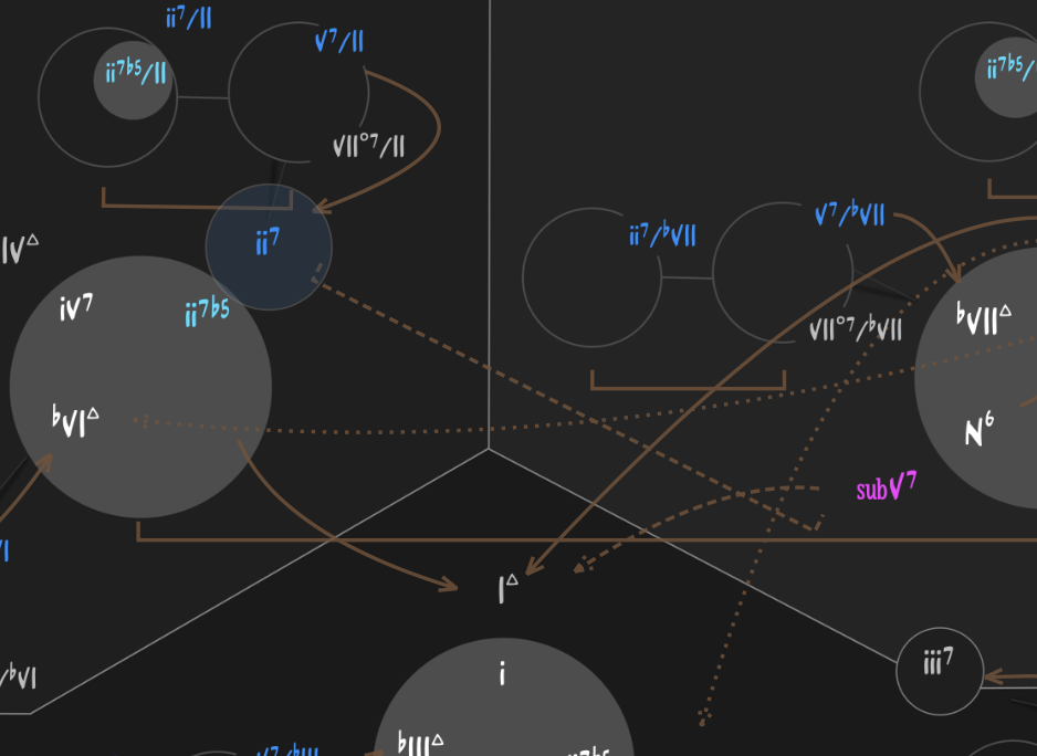 This is how Mapping Tonal Harmony Pro organizes harmonic functions and cadences, and shows how harmony works in the key of the moment.