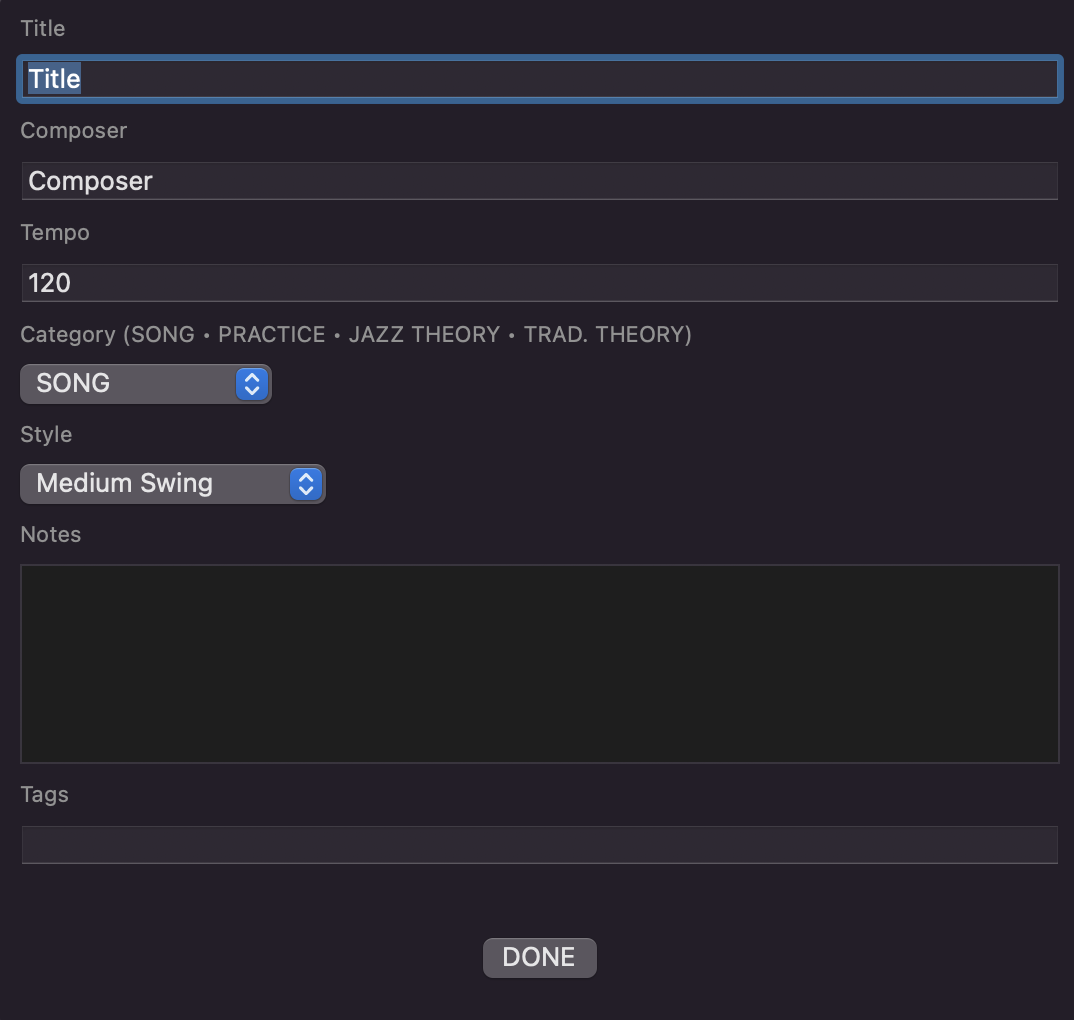 6. For Mapping Tonal Harmony Pro, a song is made out of the form and a harmonic progression. Chord symbols are not stored, they are calculated based on the starting key, modulations, and harmonic functions.