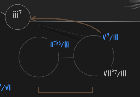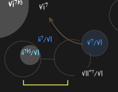 When clicking on the map, Mapping Tonal Harmony Pro will detect (and highlight) often-used cadences and important bass-lines movements.