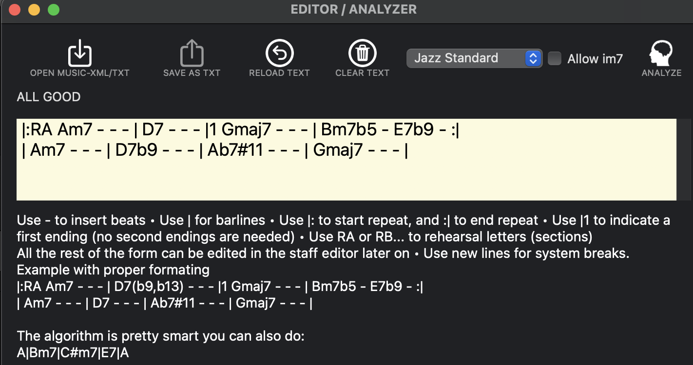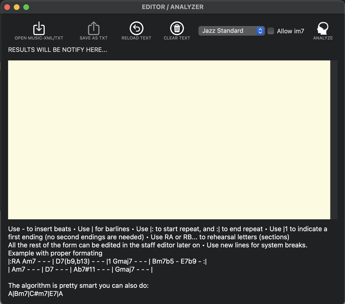 • The Analyzer is able to solve a complete harmonic analysis of any chord progression written in an ordinary text editor. It finds key centers, modulations, pivot chords and of course, functional analysis and chord-scales for every chord in the song.