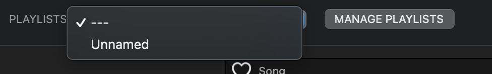 You’ll see the PLAYLISTS popup button with showing — (if you open the popup it will show one list already there called Unnamed)