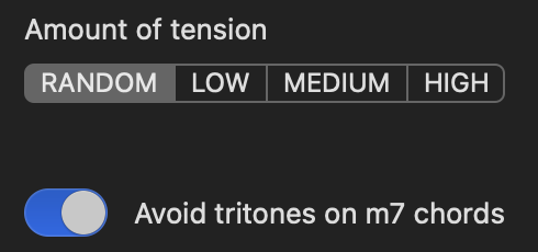 You can also tell Mapping Tonal Harmony Pro to only consider upper structures that offer a certain amount of tension. Remember that every time you click on one of these options the app will show a brand new set of upper structures using its algorithm.