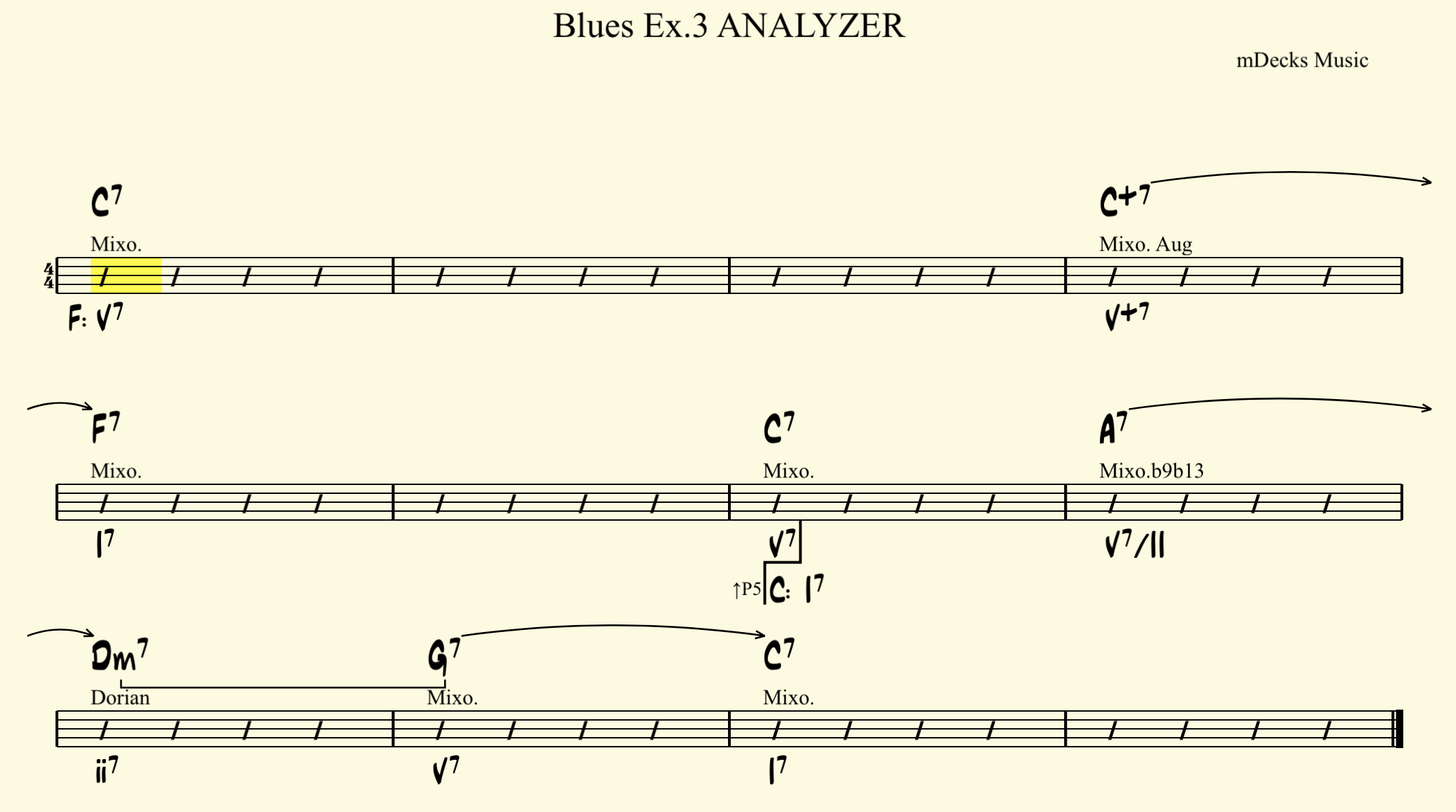 • Analyze the same song using any of the 10 different harmonic languages available: Jazz, Blues, Early Baroque, Late Classical, etc. Remember, although the rules of harmony are universal, some styles differ in the way they approach it (i.e. In Blues you can have a I7 chord)