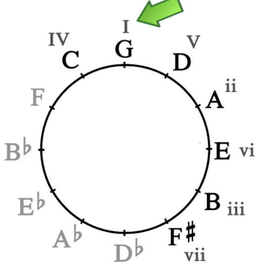 Here’s the circle in G major. So these are the notes in the G major scale.