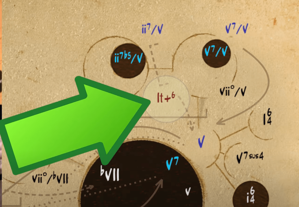 For jazz musicians this is just a subV/V. When you play it on the piano, it’s clearly a dominant chord. And there’s three variations: the German augmented sixth (with all of the regular notes), the Italian augmented sixth (which has no 5th), and the crazy French augmented sixth version (with a b5).